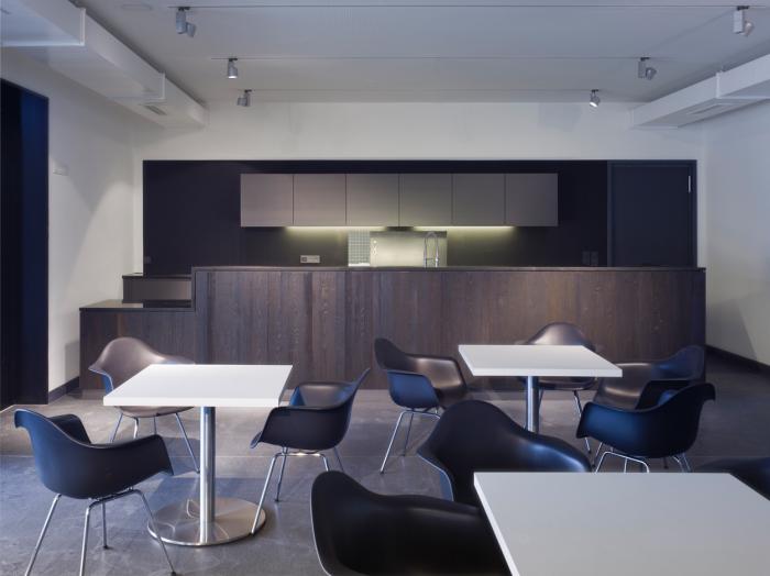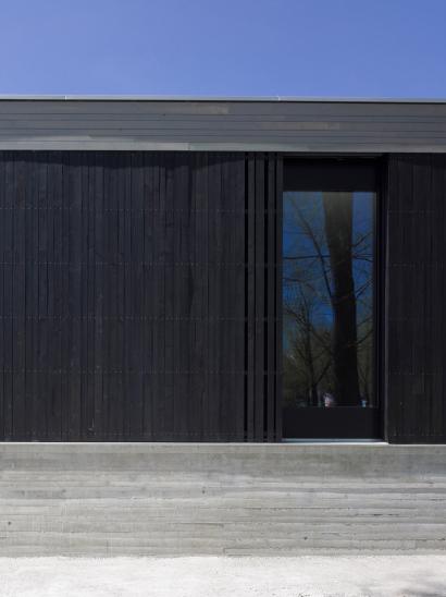 Die Theke übernimmt das Thema der Fassadenbekleidung